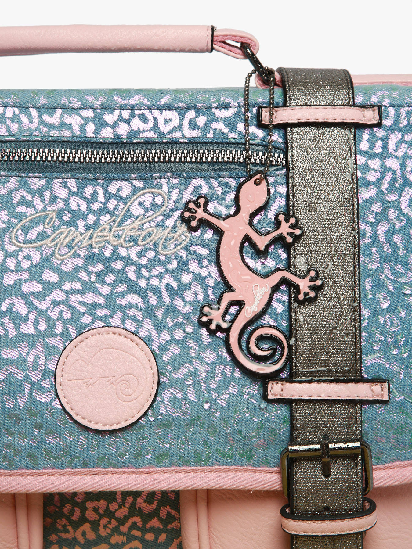 38 cm - 18 litres - 1.07 kg ~ Cartable enfant primaire 38cm de la ligne Vintage Fantasy de chez Caméléon, parfait pour le CP, CE1 et le CE2. Il se divise en deux compartiments séparés par une poche centrale zippée et peut contenir les formats cahiers A4 et 24x32cm. On retrouve à l'extérieur du cartable un emplacement pour la gourde. Pratique, il dispose de deux poches à fermeture éclair sur le devant, idéales pour un petit goûter ou l'agenda. Petit plus, ce cartable dispose d'une étiquette nom. Le fond du cartable est renforcé pour plus de solidité et des bandes réfléchissantes sont disposées autour du sac et sur les bretelles. Conçu pour le confort des enfants, le dos et les bretelles sont rembourrés. Petit plus, la règle est offerte ! Fabriqué en polyester recyclé imperméable.