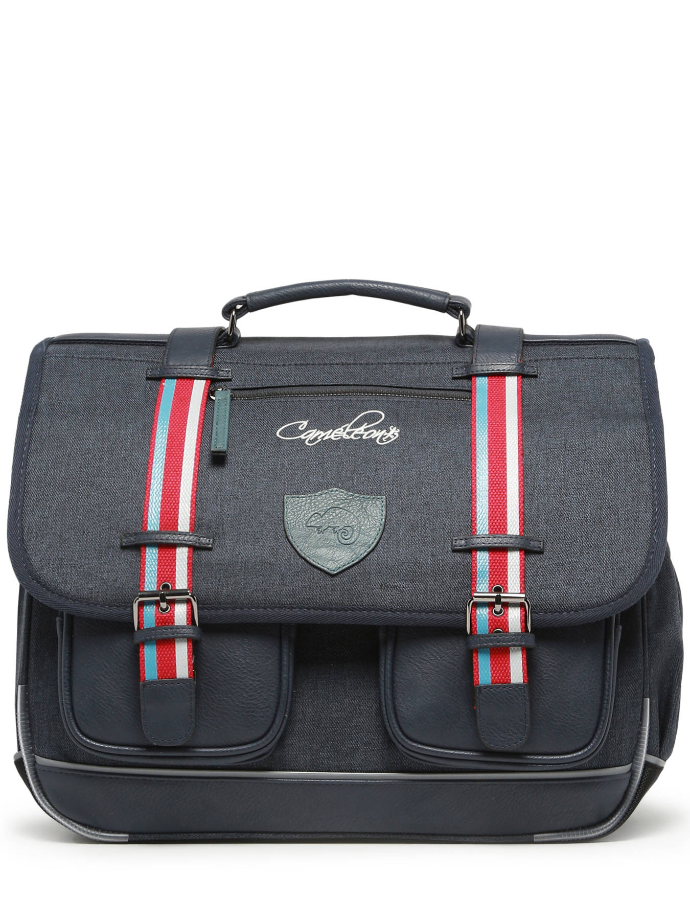 41 cm - 24 litres - 1.33 kg ~ Cartable enfant primaire 41 cm signé Caméléon de la ligne Vintage Urban. Ce cartable enfant convient parfaitement pour le CM1 et le CM2. Il se divise en trois grands compartiments pour l'ensemble des affaires d'école. Fonctionnel, il dispose d'un emplacement spécial gourde et de trois poches à fermeture éclair sur le devant du cartable. Petit plus, ce cartable dispose d'une étiquette nom. Ergonomique, la poignée et le fond du cartable sont renforcés. Très confortable, le dos et les bretelles sont rembourrés. Ce cartable est fabriqué en polyester recyclé imperméable. Côté sécurité, des bandes réfléchissantes sont disposées autour du cartable enfant. Petit plus, une règle est offerte !